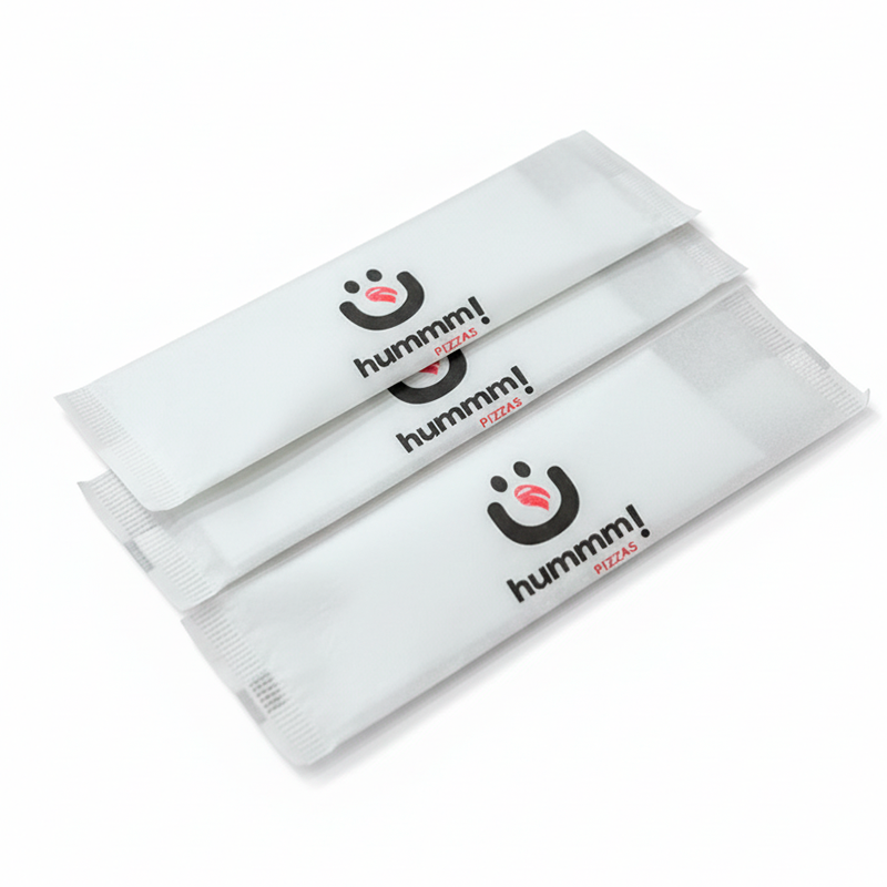 Guardanapo sache, ideal para uso rápido e eficiente nas lojas Hummm! Pizzas, mantendo higiene e organização.